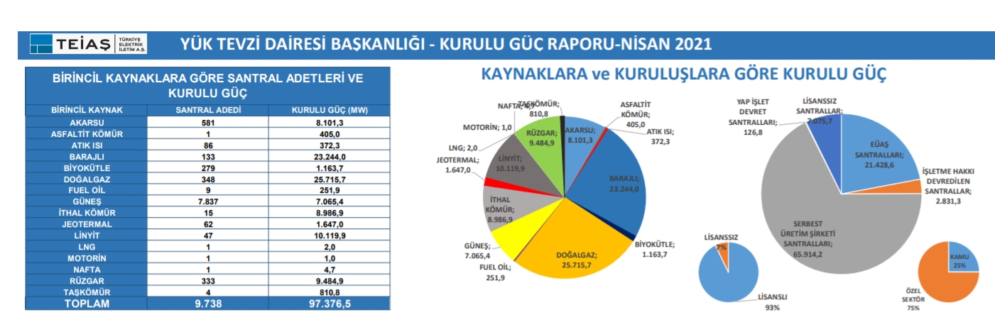 TEİAŞ’ın Nisan 2021 Kurulu Güç Raporu’na buradan ulaşabilirsiniz.