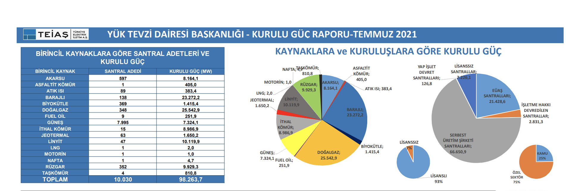 TEİAŞ’ın Temmuz 2021 Kurulu Güç Raporu’na buradan ulaşabilirsiniz.