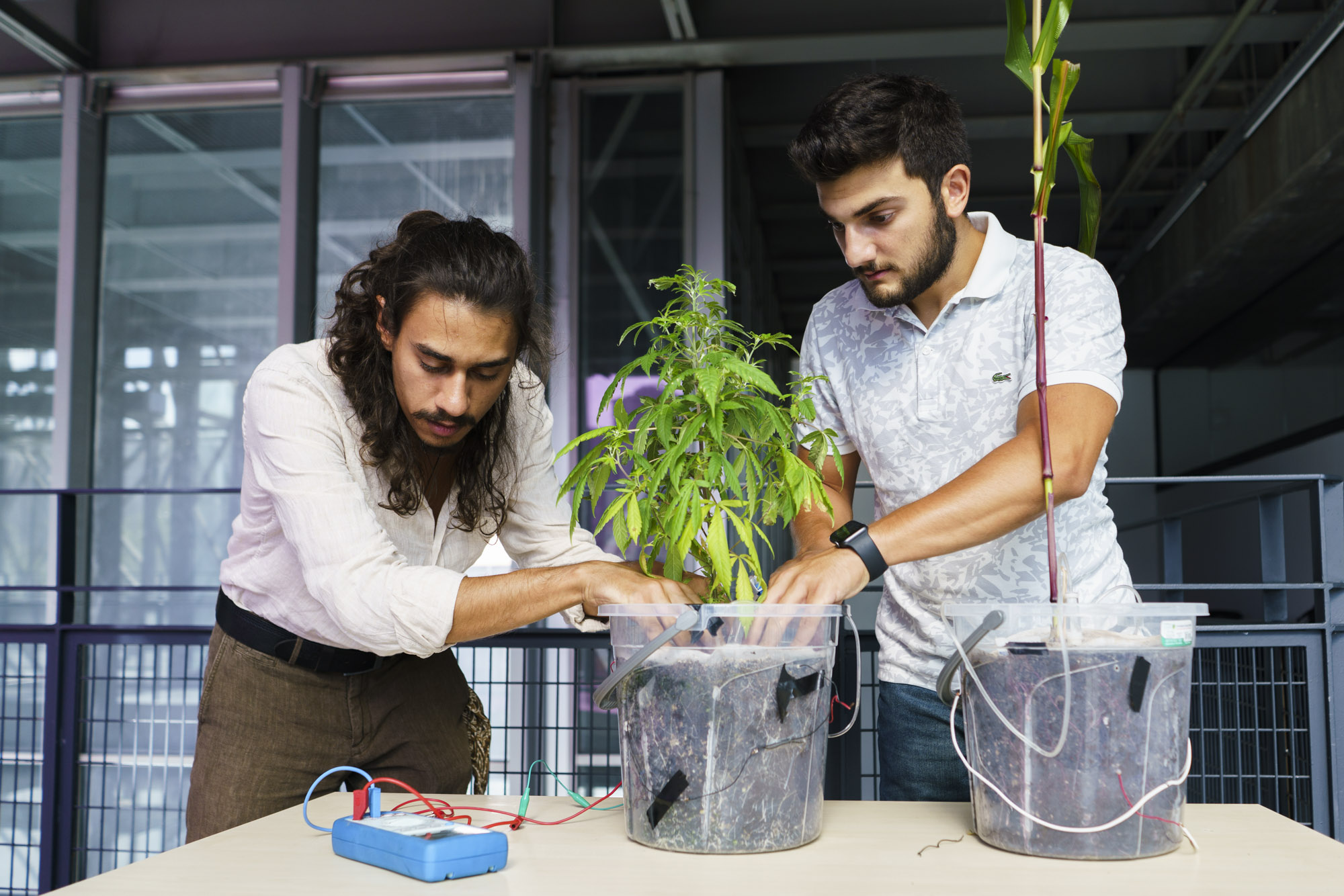 İstanbul Bilgi Üniversitesi Genetik ve Biyomühendislik Bölümü mezunu Ömer Yıldız ile BİLGİ Enerji Sistemleri Mühendisliği Bölümü öğrencisi Ege Uras’ın ortak çalışmasıyla bitki gelişiminden sürdürülebilir elektrik enerjisi üretilebiliyor.