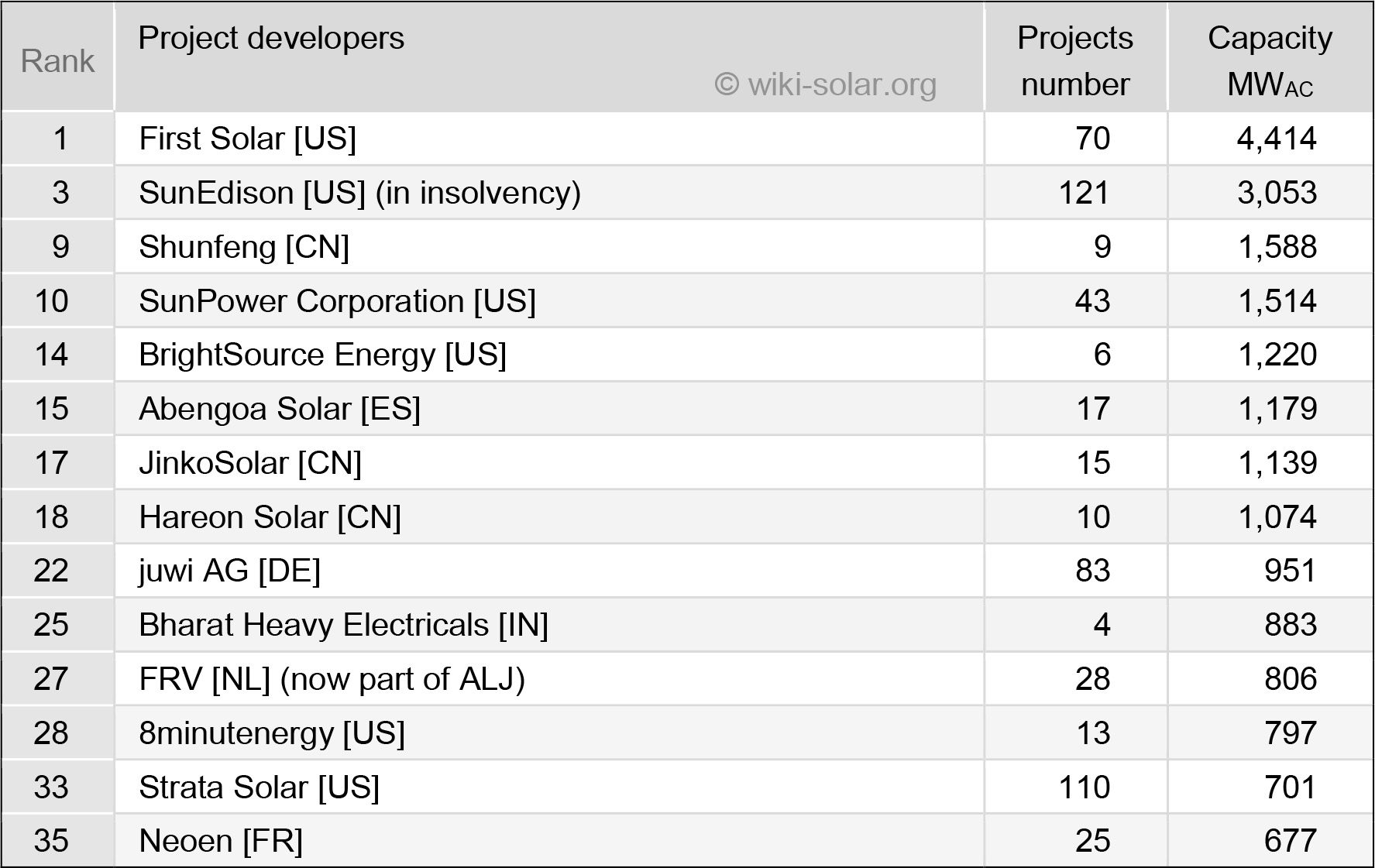 Wiki-Solar web sitesi, en büyük küresel güneş enerjisi santrali sahiplerinin listesini yayınladı. Liste, artan sayıda ülkedeki enerji hizmeti sunan dağıtım ve perakende satış firmasının, güneş enerjisi yatırımlarına doğru hızla yol aldığını gösteriyor.