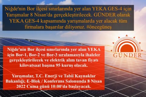 14/07/2021 tarih ve 31541 sayılı Resmi Gazete’de yayımlanan “Güneş Enerjisine Dayalı Yenilenebilir Enerji Kaynak Alanları ve Bağlantı Kapasitelerinin Tahsisine İlişkin Yarışma İlanı” kapsamında yarışmalar 08/04/2022 tarihinde saat...