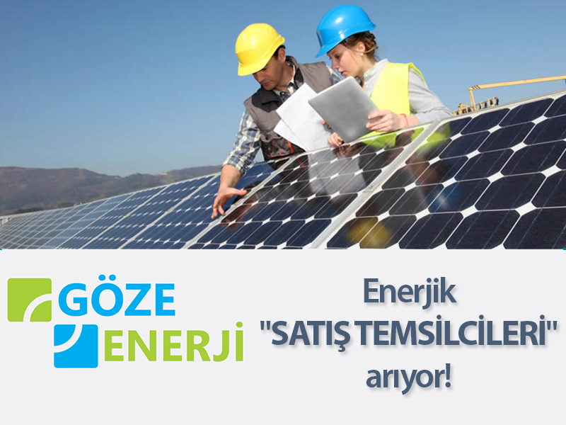 Göze Enerji, tecrübe, bilgi birikimi ve yenilikçi bakış açısıyla yenilenebilir enerji türlerinden, Güneş Enerjisi Sistemleri alanında faaliyet gerçekleştirerek, ülkemiz elektrik ihtiyacının karşılanmasına katkı sağlıyor. EPC hizmetleri, taahhüt tecrübesi, dağıtık şebeke yönetim deneyimi ve ürün tedarik yetkinlikleri ile yenilenebilir enerji sektöründe çok sayıda güneş enerjisi santralini başarı ile gerçekleştiren firma “Satış Temsilcileri” arıyor.