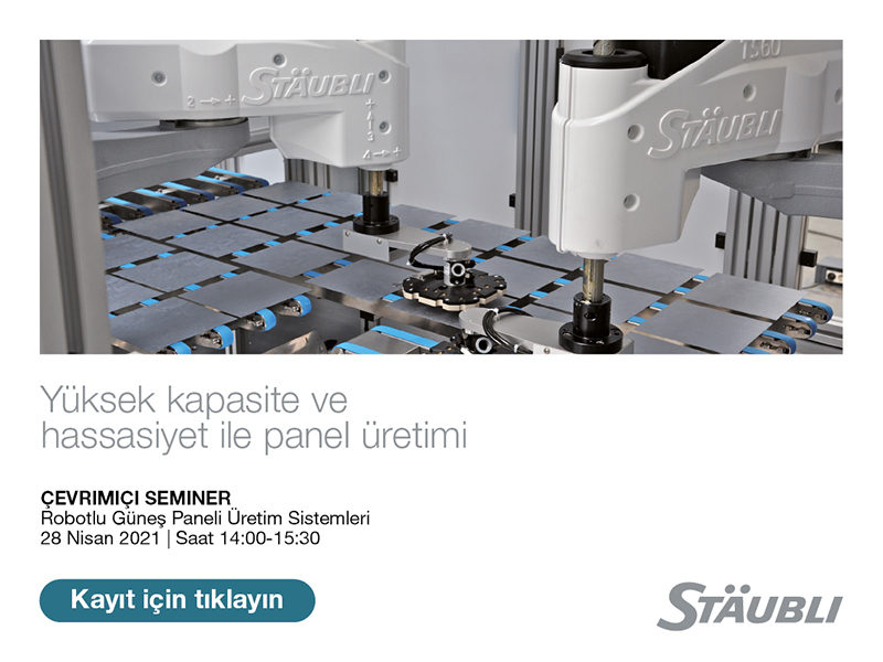 GÜNDER, STÄUBLI Robotik ile 28 Nisan 2021 Çarşamba 14:00-15:30 saatleri arasında “Robotlu güneş panel üretim sistemleri” sunumu düzenleyecek.