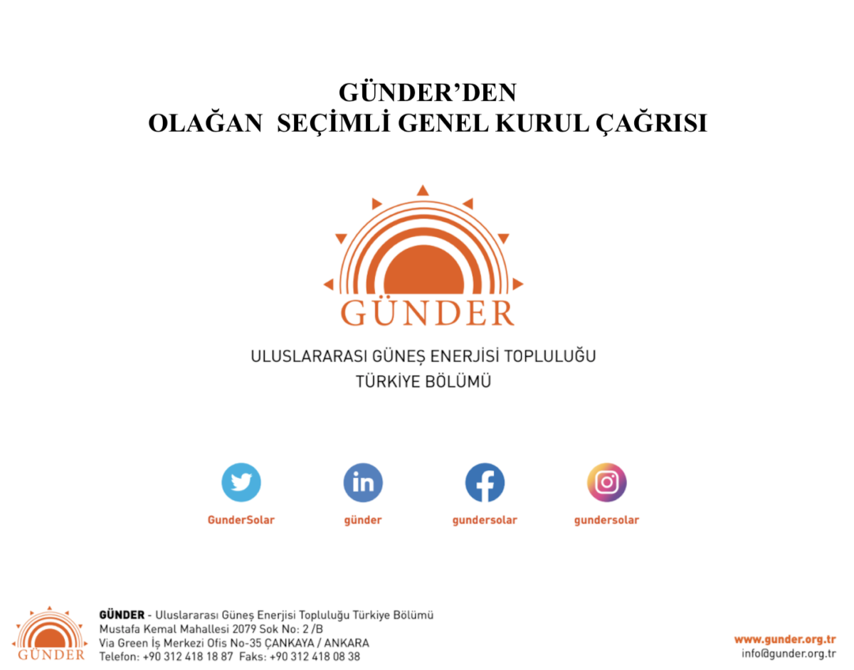 Uluslararası Güneş Enerjisi Derneği Türkiye Bölümü – GÜNDER Seçimli Olağan Genel Kurul Çağrısı yayınladı.