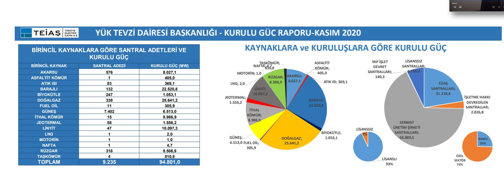 TEİAŞ’ın aylık olarak yayınladığı kurulu güç raporuna göre, kasım ayında elektrik üretim kurulu gücü bir önceki aya göre 882 MW artış ile 94.801 MW değerine ulaştı.