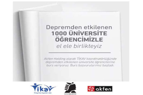 Akfen Holding, kurucusu olduğu Türkiye İnsan Kaynakları Eğitim ve Sağlık Vakfı (TİKAV) koordinasyonunda depremlerden etkilenen 1000 üniversite öğrencisine üniversiteden mezun olana kadar öğrenim bursu sağlayacak....