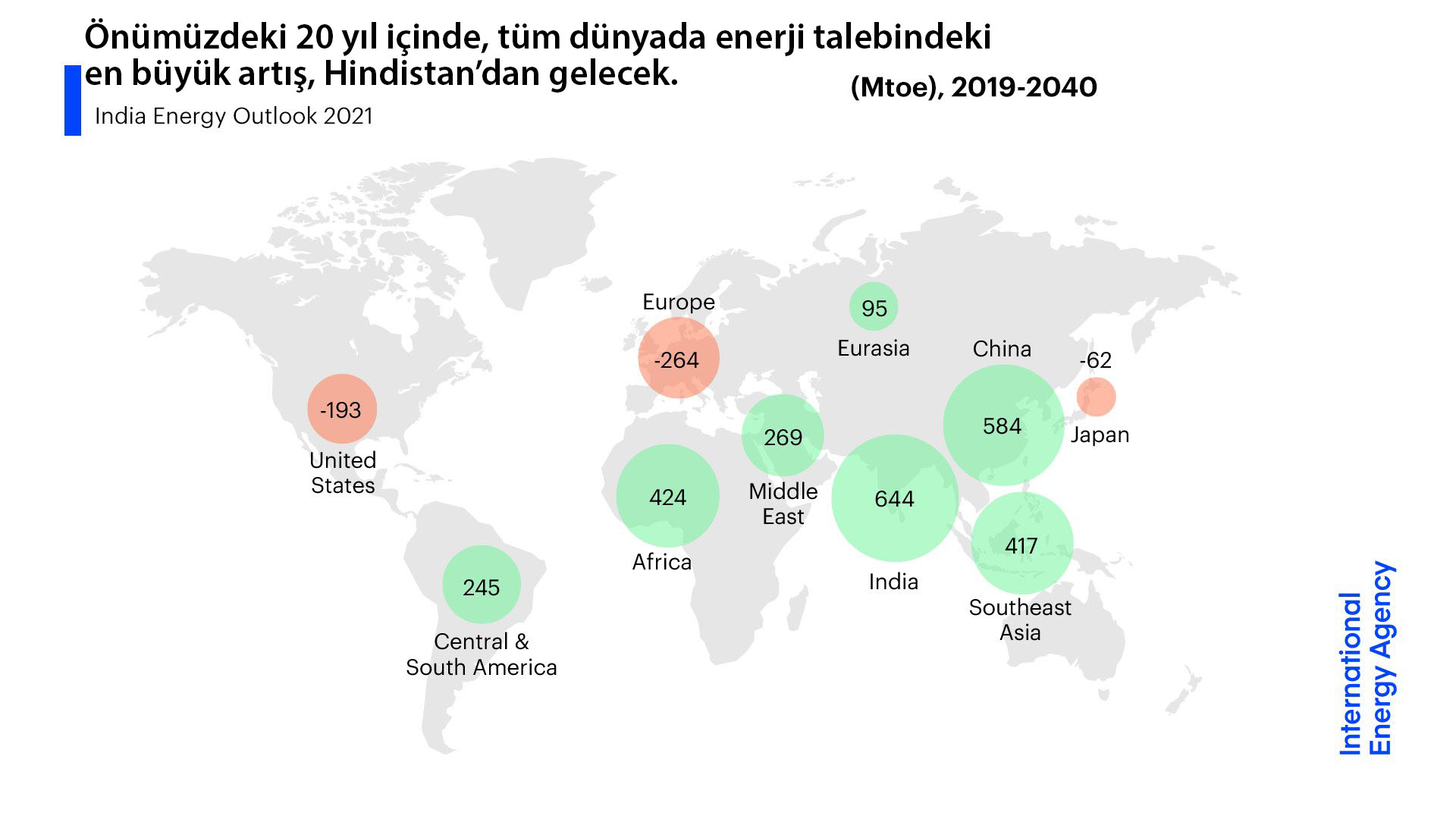 Hindistan Enerji Görünümü 2021 raporuna göre, Hindistan’ın karbon yoğun bir gelecekten kaçınmak için güçlü politika desteğine, teknolojik gelişmeye ve temiz enerji yatırımlarına ihtiyacı her geçen artıyor. Hindistan, ekonomisini geliştirmeye ve vatandaşlarına daha fazla refah getirmeye devam ederken, önümüzdeki 20 yıl içinde dünya çapında enerji talebindeki en büyük artışı yaşayacak ülke olmaya hazırlanıyor.