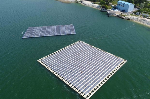 Büyükçekmece Gölü üzerinde kurulu olan ve Türkiye’nin ilk Yüzer Güneş Enerji Santralı (GES), günlük 260 hanenin enerji ihtiyacını karşılayacak kapasiteye ulaştı. Yüzer Güneş Enerji Santralı’nın karadaki uygulamalarına göre yüzde 10 daha verimli olduğuna dikkat çeken proje mühendislerinden Uğur Demirel, uygulamayla 1 yılda 164 ton karbondioksit salımını engellediklerini söyledi. İstanbul Büyükşehir Belediyesi’nin (İBB) bir iştiraki olan İstanbul Enerji’nin İSKİ’yle birlikte yürüttüğü proje geçtiğimiz yıl ağustos ayı başında uygulanmaya başlandı. Santralda 960 adet 260 Watt’lık güneş paneli bulunuyor. Türkiye’nin ilk yüzer GES’inden toplam 260 ayrı hanenin enerji ihtiyacı karşılanabiliyor. Sistemin uzun ömürlü olması için korozyona yani aşınmaya karşı dayanıklı özel bir malzeme kullanıldı.