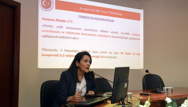 Kastamonu Ticaret ve Sanayi Odası Toplantı Salonu’nda gerçekleşen çalıştaya kurum müdürleri, yardımcıları ve akademisyenler katıldı. Çalıştayda sunum gerçekleştirilen Ticaret Bakanlığı Kooperatifçilik Genel Müdürlüğü Gümrük ve Ticaret Uzmanı Gülsüm Gözde Ayanoğlu, ”Kooperatifler bir çok alanda faaliyet gösterir. Türkiye’de ne yazık ki sadece tarımsal alanda sulama alanında ya da yapı kooperatifçiliği alanında sektörlere sıkışmış durumda. Vatandaşlar üzerinde bir farkındalık çalışması yaptık. Enerji kooperatifleri bahsettiğim 30 kooperatif arasında. Beş sene önce Türkiye’de böyle bir uygulama yoktu. Ama dünyada 1930’dan beri var olan bir kooperatifidir. Enerji kooperatifleri bu bahsettiğim kooperatiflerden bir tanesiydi. Bugün ciddi anlamda Amerika Birleşik Devletlerinde bu alanda 42 milyon vatandaş enerjisini bu şekilde karşılıyor. Avrupa’da yetmişlerden bu yana kullanıyorlar. Danimarka’da 1973 yılında yaşanan petrol krizinde ciddi etkilenen ülkelerden bir tanesiydi. Bu kooperatifleri nasıl kuracağız? Kooperatiflerin temel kuruluş şartı var. Birde elektrik piyasası mevzuatından kaynaklanan özel ortaklık şartları var. Bu kapsamda gerçek veya tüzel kişiliğe gerek var” şeklinde konuştu.