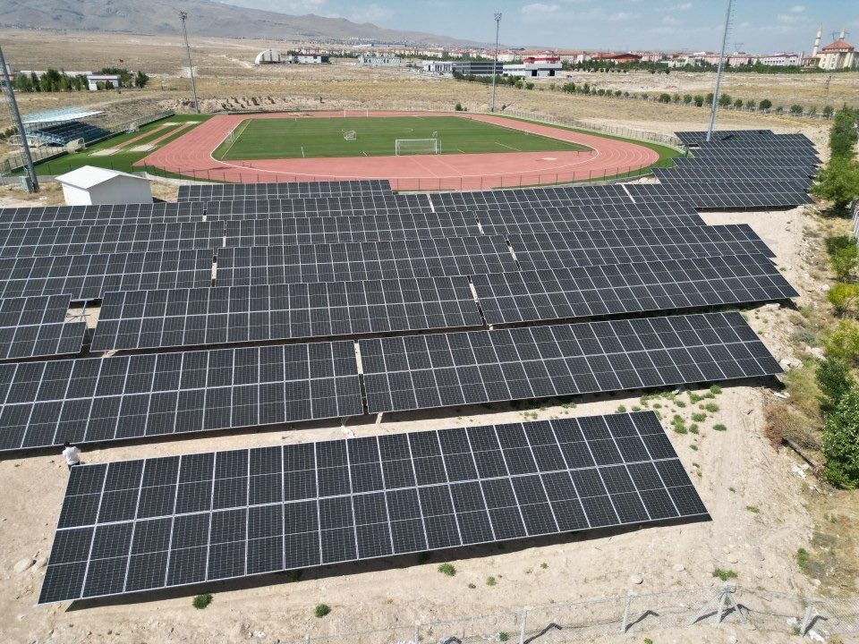 Üniversite tarafından Spor Bilimleri Fakültesi Yerleşkesi’nde 6 bin 607 metrekarelik tarıma uygun olmayan kayalık araziye, 858 panelden oluşan GES kuruldu.