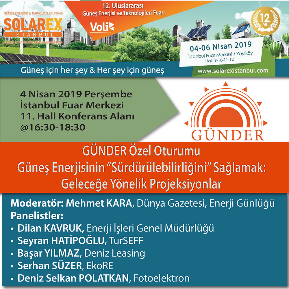 GÜNDER, SOLAREX İstanbul kapsamında, “Güneş Enerjisinin Sürdürülebilirliğini Sağlamak: Geleceğe Yönelik Projeksiyonlar” paneli düzenleyecek.