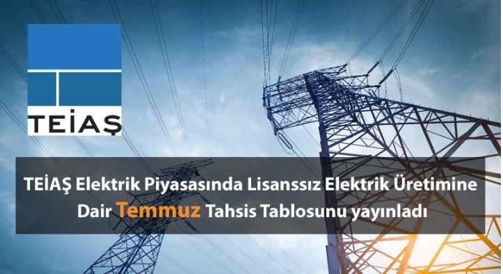 TEİAŞ Elektrik Piyasasında Lisanssız Elektrik Üretimine Dair Tahsis Temmuz Tablosunu yayınladı.