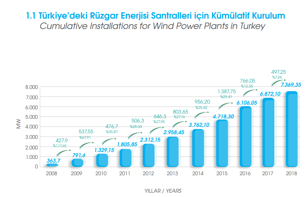 Türkiye Rüzgar Enerjisi Birliği (TÜREB) 2018 yılı “Rüzgar Enerjisi İstatistik Raporu”nu yayınladı.